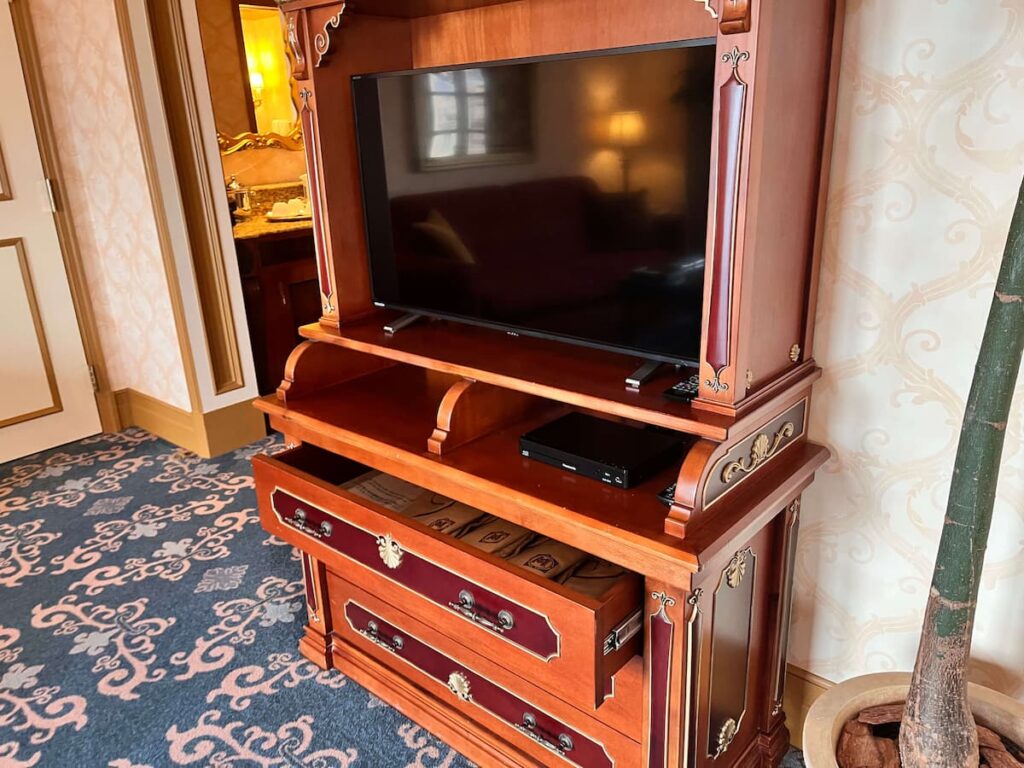 テレビは番組を視聴するだけでなく、客室案内の確認やチェックアウトなどでも使用します。さらにディズニーチャンネルも無料で視聴できますよ!