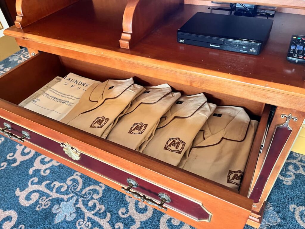 就寝前のターンダウンサービスお願いしていれば、パジャマはベッドの上に置いてくれます。
