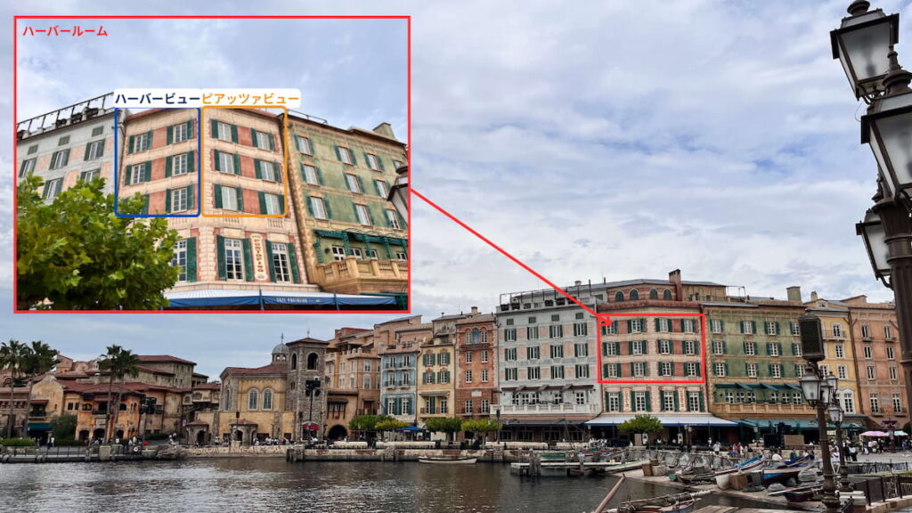 少し角度がついてますが、ハーバー側はハーバービュー、広場側はピアッツァビューで各3部屋ずつ。